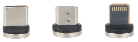 - Magnetic Adapter Tips for USB-C, Micro-USB, and Lightning Connections