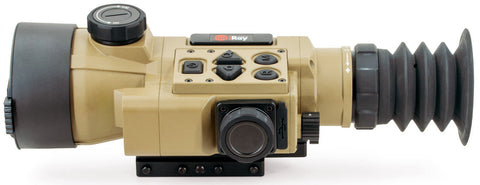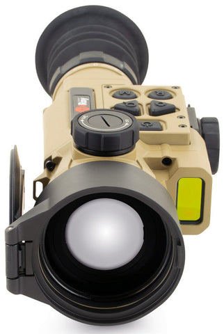 The HCH50R is designed as a multifunction optic, capable of use as a dedicated thermal weapon sight, a clip-on in front of a day optic (up to 10× magnification), or a handheld monocular. Its integrated 1,200-yard laser rangefinder and onboard ballistic calculator automatically compensate for bullet drop based on range to target, providing precise holdover adjustments in real time. The top-mounted focus control and updated button layout ensure easy operation, even while wearing gloves.